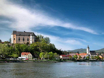 besichtigen. Von Mitterkirchen im Machland biegen wir ab auf die große Straße in Richtung Mettensdorf, von dort geht es weiter nach Pitzing. Bevor wir Eizendorf erreichen, geht eine Straße rechts ab in Richtung Donau. Wir stoßen auf einen Badesee und wenden uns an seiner Spitze nach links, biegen dann in den nächsten Feldweg nach rechts ein und erreichen den Radweg am Donauufer. Wir kommen in Dornach an und entscheiden uns für den Radweg zwischen Donau und der Bahnstrecke in Richtung Grein. In Grein können wir eine Pause in einem netten Café einlegen und dann die Altstadt, Schloss Greinburg mit dem Schifffahrtsmuseum und vor allem das Historische Stadttheater (ältestes Österreichs) anschauen. |