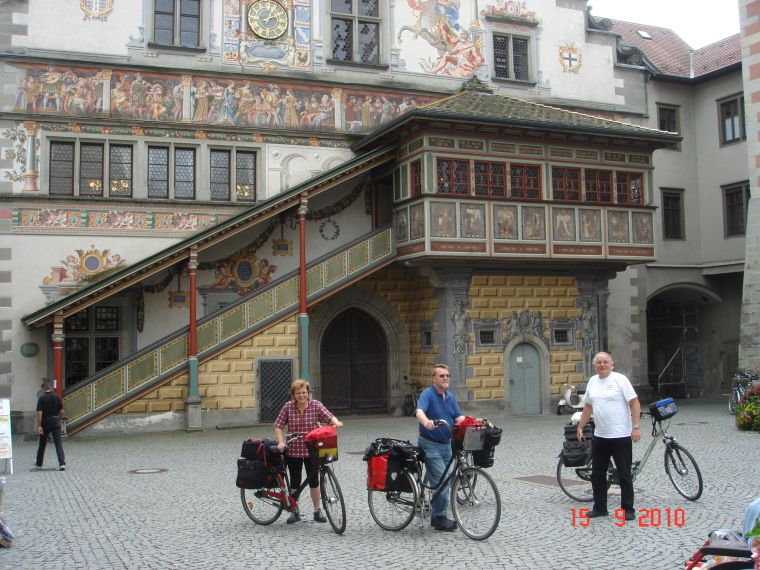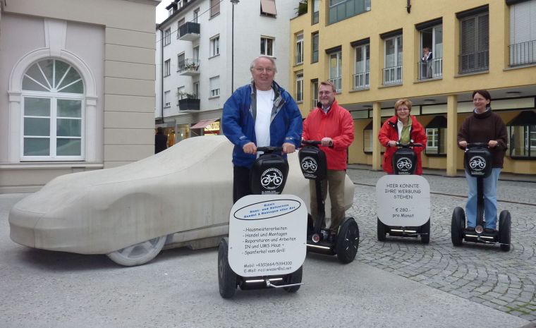 Rolfs Kunstfoto mit goldenem Schnitt(en). Ein geübtes Auge erkennt den Unterschied zwischen Künstler und Knipser. Hier noch Ullas Version Nach der kurzen Fahrt nach Bregenz gibt es eine fundierte Stadtführung auf den beliebten "Segways". Leider war Renates Turtle nicht wegzubekommen. |