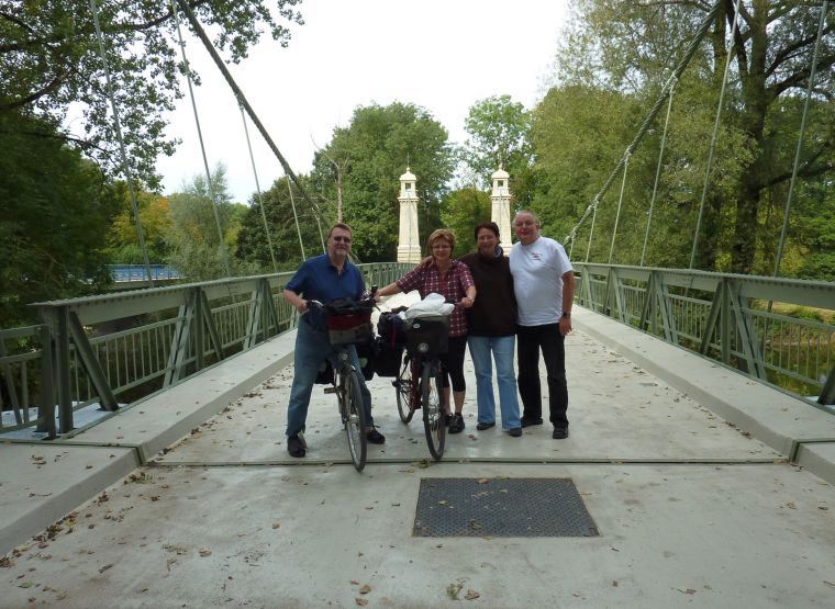 Dann über die zweitlängste Drahtseilbrücke nördlich der Alpen: |