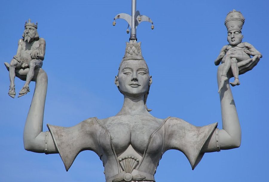 links mit dem schlappen Kaiser (weltliche Macht) - rechts mit dem nackten Papst