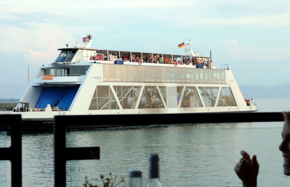 Da fährt es hin - das von der Fähre umfunktionierte Schlager-