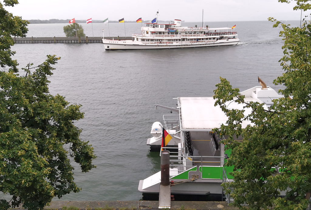 Auf dem Zimmer angekommen wurden wir von der BADEN begrüßt. Fridolin parkte schon friedlich vor unserem Fenster. ----- Später kamen auch Renate und Rolf an, die nach einigen Hindernissen (Hotel finden, Parken, Räder) im GOLDENEN RAD auspacken konnten. Das freudige Wiedersehen wurde beim DELPHI gebührend gefeiert. |
