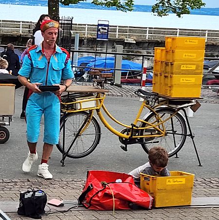 Umanaya. und dann Akrobatik mit und auf dem gelben Postfahrrad vom Postman. |