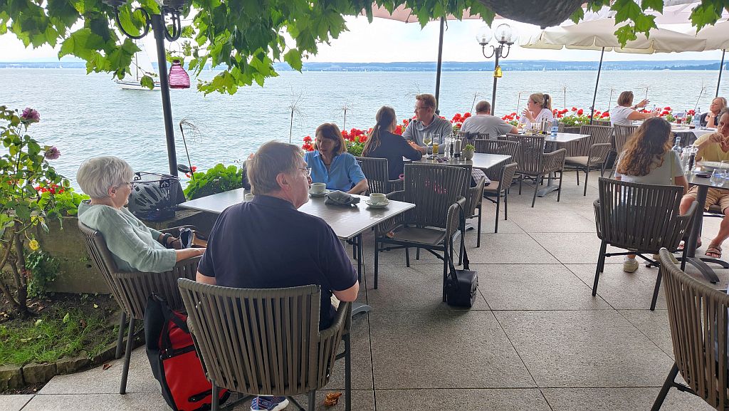 aika-Frühstück im Sonnenschein - dann auf zur Anette. In Meersburg - oh Wunder: der "Wilder Mann" ist seit ![]() ![]() Franz hätte sich fast ![]() ![]() Wegen des schönen Wetters wurde bei "Schorsch" noch ein Halt eingebaut. |