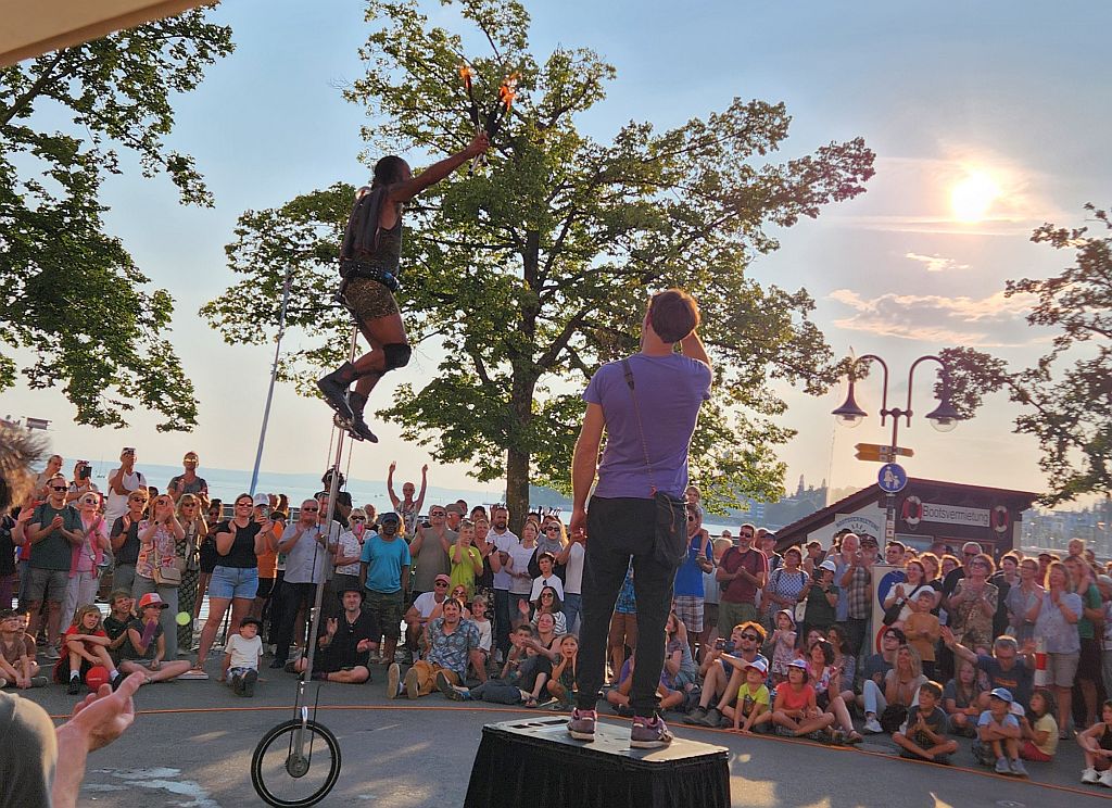 ![]() Dazu wohl die beste Unterhaltung beim Kulturufer: Mr. Copini (Akrobat u. Clown) ![]() Absacker bei den Grünewalds |