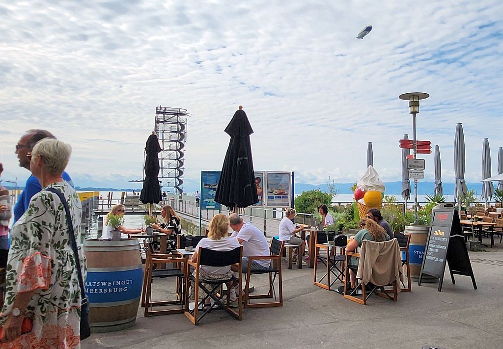 ![]() Dann mit den Rädern zum Bahnhof und mit dem Zug nach Lindau. (Wir haben schließlich alle eine ECHT BODENSEE CARD!) Wir wollten zur Ausstellung von Christo und Jeanne Claude im Kunstmuseum: ![]() Für mich bleibt die Frage: Woher hat Christo das viele Geld für seine teuren Exponate bekommen? Danach ein Bummel durch Lindau mit obligatorischem Kaffeetrinken im Lindauer Hof - allerdings diesmal unten, weil oben geschlossen war. ![]() Wir fanden auch einen Stehtisch mit einem sardischen Schuh! ![]() Es geht weiter: Wo ist Ulla? ![]() Nach der Rückkehr und dem Abendessen: Ein wundervoller Balkonabend mit Blick auf Mole und Turm ![]() |