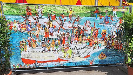 Auf den Absperrungen waren auch Zeichnungen der vergangenen Kulturufer so auch zu unserem ersten Kontakt im Jahre 2013 |