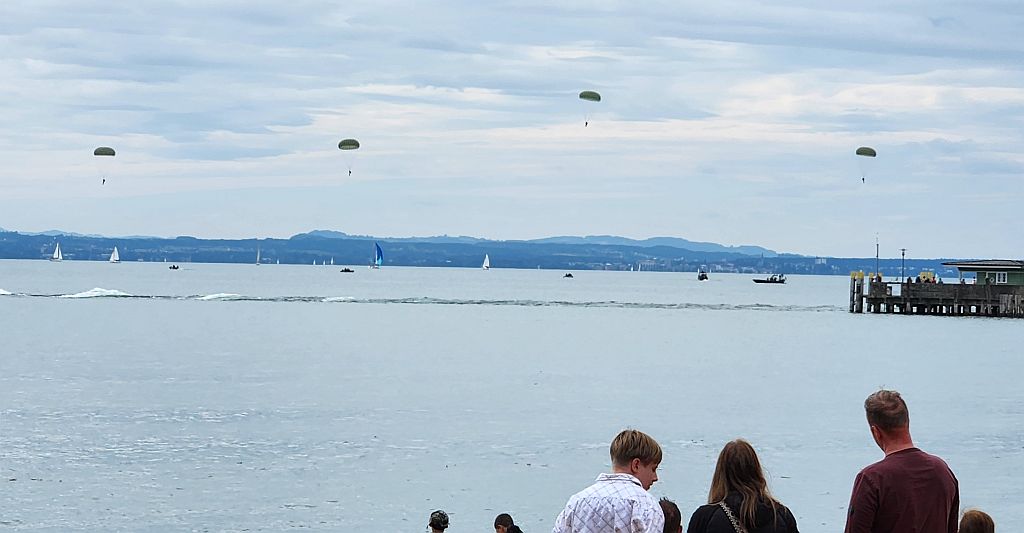 ... aber auch Werbung für die Bundeswehr: Fallschirmspringen (zu den Booten)