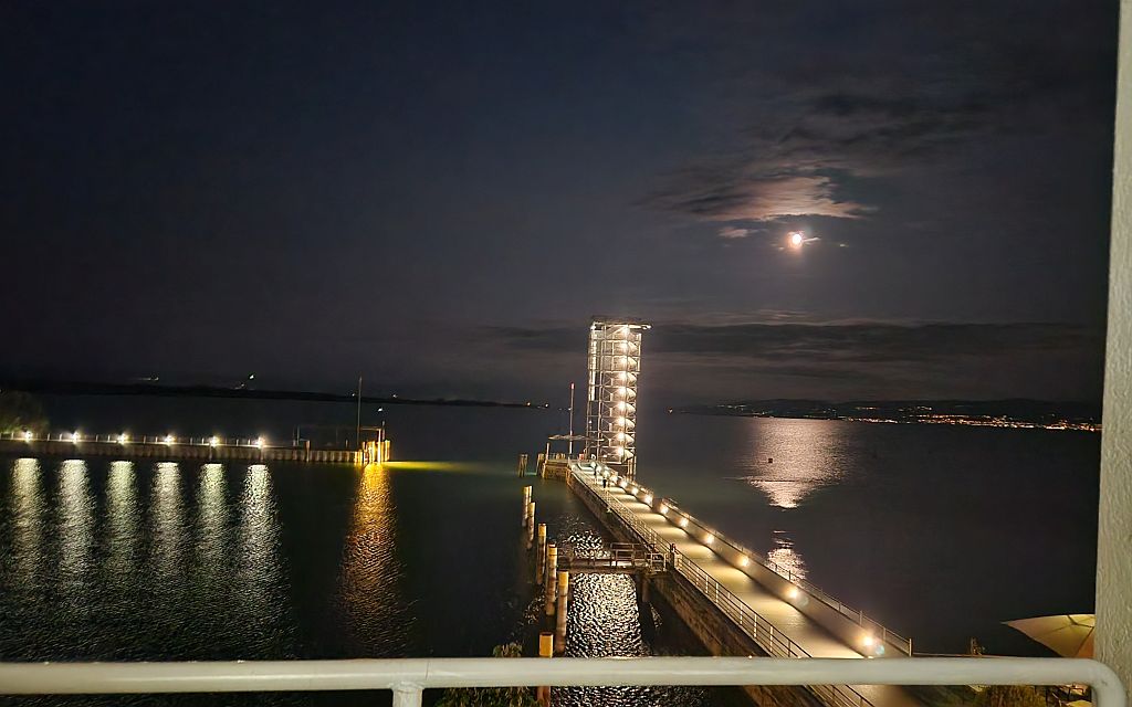 Ausklang bei uns mit Mond und Perlenkette rechts (schweizer Ufer)
