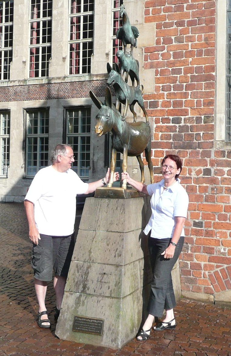 Dann wollte Ulla auf keinen Fall den Salat im nächsten Platzregen essen, sondern wir mussten uns ins "Becks am Markt" zurückziehen. Nach einer Wartepause konnten wir uns mit den Stadtmusikanten "befassen"