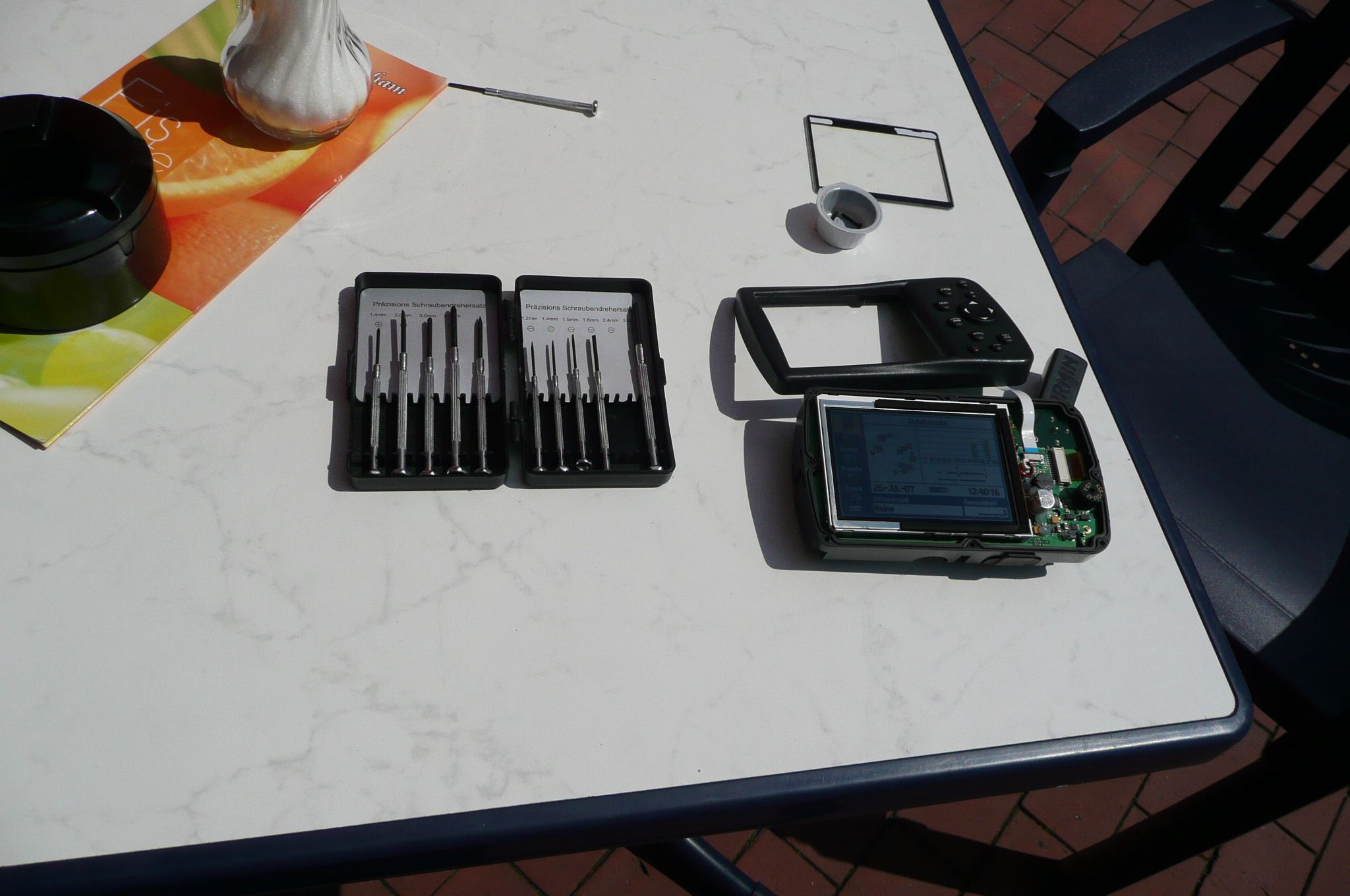 Franz war so unglücklich, dass das GPS-Gerät nicht mehr funktionierte - natürlich haben wir uns auch ein wenig verfahren. Er baute es in der Mittagspause in Nordenham auseinander und ließ es in der Sonne trocknen.